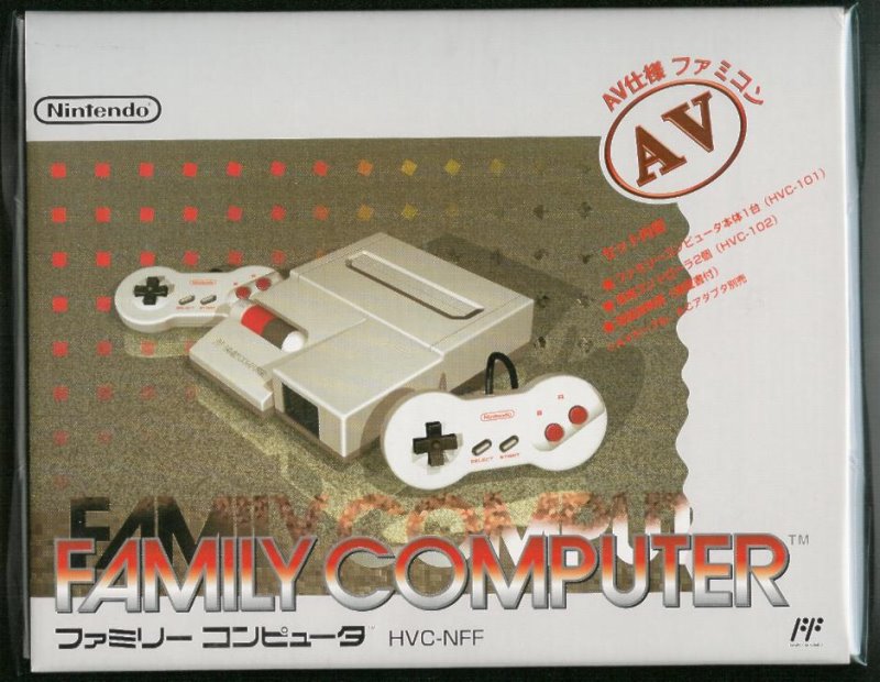 Mehr als die Konsole, zwei Controller und eine Anleitung sind in der gerade mal 25x20x6cm kleinen Packung nicht erhalten. Anschlusskabel und Netzteil muss man sich also separat besorgen. Diese spärliche Ausstattung ist auch auf die Tatsache zurückzuführen, das viele Famicom-Besitzer aufgrund der moderneren Anschlussmöglichkeit und den normalen Altersverschleiß am alten Famicom irgendwann auf das Famicom AV umstiegen und somit das alte Netzteil weiterverwenden können. In der Nach-Famicom-Ära sicherlich ein entgegenkommender Kundenservice und ein guter Nebenverdienst für Nintendo, das Famicom AV weiterhin anzubieten, denn die Nachfrage an Geräten durch das große Gebrauchtspiel-Angebot und privater Ansammlung etlicher Spielkassetten war dafür ausreichend genug. Die Produktionsmenge dürfte aber bei nur schätzungsweise 2000-3000 Stück pro Monat gelegen haben, wobei sicherlich nicht ununterbrochen produziert wurde. Leider wurde die Produktion und folglich weitere Auslieferungen schließlich im September 2003 eingestellt.