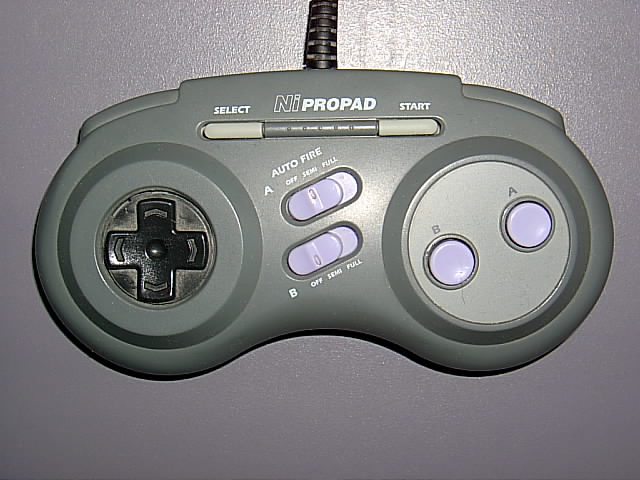 Die Firma Q.J. entwickelte seinerzeit das NiPROPAD als Alternative zum herkömmlichen Nintendo-Controller. Durch das gute Design des Pads wird schon einmal ein positiver Ersteindruck vermittelt. Die Rundungen sorgen dafür, dass das Pad angenehmer in der Hand liegt als das kantige Original von Nintendo und auch von der Größe her eignet sich das Dritthersteller-Produkt sowohl für kleine, wie auch für große Spielerhände. Zwar scheint zunächst der Abstand zwischen dem A- und dem B-Button recht groß, schnell gewöhnt man sich aber daran und die Bedienung geht flott von der Hand. Etwas ungewohnt, aber trotzdem gut zugänglich sind die oben plazierten Knöpfe Select und Start.