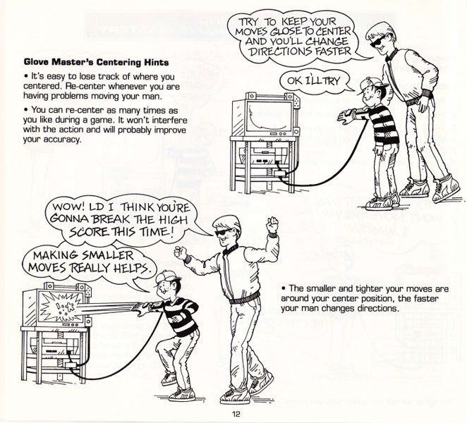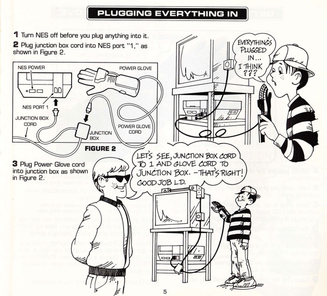 Neben dem ganzen Setup lagen auch zwei umfangreiche Anleitungen bei. Eine davon im Stile eines Comics, in dem der Glove Master seinen Lehrling Little Digit in die Welt des Power Gloves einführt. Schritt für Schritt erklärt er ihm (und damit dem Leser), wie der Power Glove eingerichtet wird, auf was bei der Anwendung zu achten ist und wie mögliche Fehler behoben werden können.