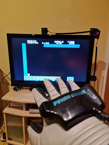 Beginnen wir mit dem NES-Klassiker schlechthin: Super Mario Bros. Wird der Arm leicht nach links oder rechts bewegt, läuft Mario in die entsprechende Richtung. Ein Heben und Senken des Gloves lässt ihn Ranken emporklettern oder sich Ducken und Röhren hinabsteigen. Mit dem Anwinkeln des Daumens wird gesprungen, Feuerbälle mit einem Beugen des Zeigefingers ausgelöst. Gerannt wird mit gebogenem Mittelfinger und Bewegung des Armes in die gewünschte Richtung. Mit den hinteren 3 Fingern kann zudem Mario langsam nach links oder rechts bewegt werden. Soweit die Theorie.Währen die Aktionen mit den Fingern recht gut funktionieren, entpuppt sich das Lenken Marios durch Bewegungen mit dem Arm als unpräzise und reine Glückssache. Oftmals wird die Bewegung ignoriert oder die Aktion mittendrin abgebrochen. Um Mario wieder in Gang zu kriegen, artet dies in verzweifeltes Gefuchtel aus, vor allem wenn der nächste Goomba bereits drohend auf Mario zumarschierst.