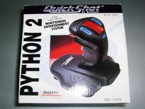 Der Python 2 ist ein Produkt von der bekannten Joystickmarke QuickShot. Beim ersten Anblick mag man sich vielleicht nichts Besonderes bei dem Joystick denken. Aber hat man ihn erst einmal in der Hand, will man ihn dank seiner überzeugenden Ergonomie gar nicht mehr loslassen. Gerade bei Flug- und Rennspielen wie "Top Gun" oder "Rad Racer" ist der Python 2 dank seiner genauen Mechanik ideal. Bei Jump 'n' Runs ist er allerdings - bedingt durch seine Bauform - weniger gut zu gebrauchen, da er mehr einem Manövrierstick aus einem Flugzeug gleicht und das Bewegen einer Spielfigur nach links oder rechts somit eher verwirrend erscheint.
