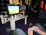 Wenn man sich hier am Stand umsieht, scheinen die Besucher ja sehr gut auf die Ausstellung anzuspringen und zocken die alten Spiele auch gerne Probe...