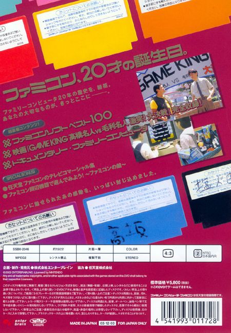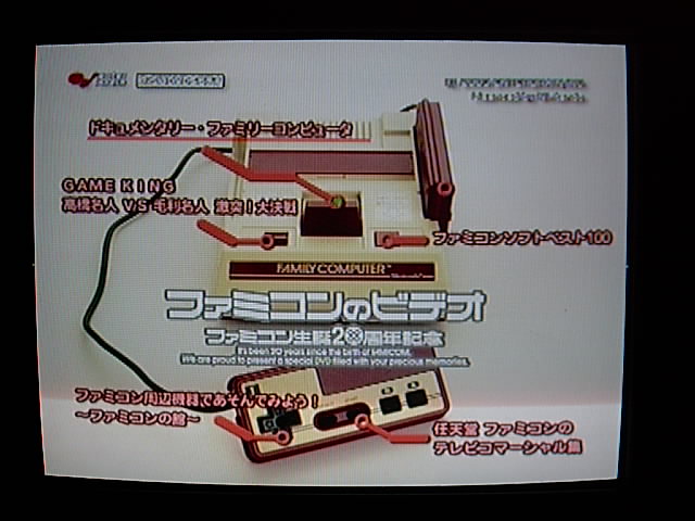Beim ersten Menüpunkt wird die Geschichte des Famicoms illustriert. Mit Kommentaren von japanischen Branchenkennern und kurzen Ausschnitten aus Spielen wie" Super Mario Bros." oder " Adventure Island" wird dabei der Werdegang von Nintendos erster Konsole aufgezeigt und auf den großen Einfluss auf die späteren Videospielgenerationen aufmerksam gemacht.