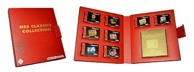 Die Sammler unter euch sollten unbedingt nach der streng limitierten "NES Classics Collection" Ausschau halten (s. letztes Bild rechts). Diese Sammlerbox beherbergt alle NES Classics Spiele der ersten Serie inkl. einer zusammengefassten Anleitung für alle acht Spiele und kommt in einer edlen Mappe aus hochwertiger Kartonage daher. Die NES Classics Collection war in dieser Form niemals im Handel erhältlich - lediglich über das Prämiensystems des Nintendo.de Sternekatalogs war sie für kurze Zeit zum stolzen Preis von 13.500 Sternen zu erwerben. Regelmäßige NES CENTER Besucher hatten zudem die Chance, bei uns eine der begehrten Sammleditionen im Rahmen eines exklusiven Gewinnspiels abzustauben :)