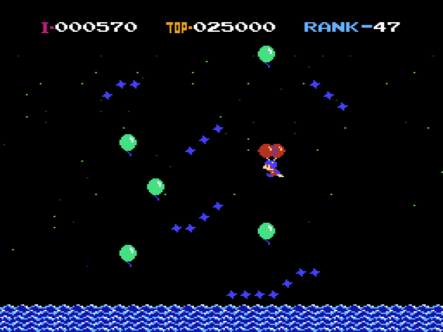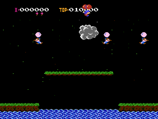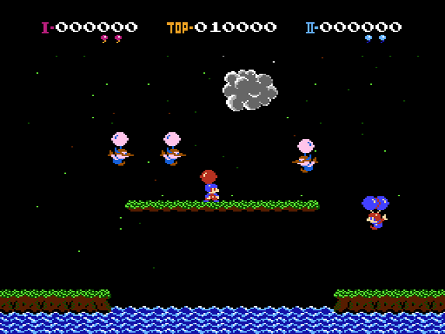 Fliegen kann so einfach sein – wer hat sich als Kind damals nicht gewünscht, sich ein paar Luftballons umzuschnallen und mit den Armen wedelnd abzuheben? Genau darum geht es in Balloon Fight! Als einer der frühen Inhouse-Titel reiht sich Balloon Fight in die Reihe solcher arcadelastiger Spiele ein, bei deren Entwicklung sich Nintendo durchaus von zeitgenössischen Spielhallenklassikern inspirieren ließ, um das eigene Sortiment zu erweitern. In diesem Fall bediente man sich am Titel Joust von Williams Electronics, das später auch noch für das NES umgesetzt wurde und zu dem sich gewisse Parallelen im Gameplay nicht leugnen lassen. Lieferten sich in Joust noch Ritter auf fliegenden Straußen spannende Luftgefechte, wobei sie ihre Kontrahenten per Landung auf den Kopf ausschalteten, so galt es in Ballon Fight, nach dem gleichen Angriffsprinzip die Ballons von an ihnen hängenden Fliegerassen zu zerstören, um sie abstürzen zu lassen. Von einem bloßen Klon oder billigem Abklatsch von Joust kann bei Balloon Fight aber nicht die Rede sein, da Nintendo es verstand, das simple Spielprinzip sinnvoll zu erweitern. Ganz nebenbei versprüht Balloon Fight nicht zuletzt aufgrund des Themenwechsels und der besseren technischen Aufmachung deutlich mehr Charme als der Automatenzock aus dem Hause Williams Electronics.