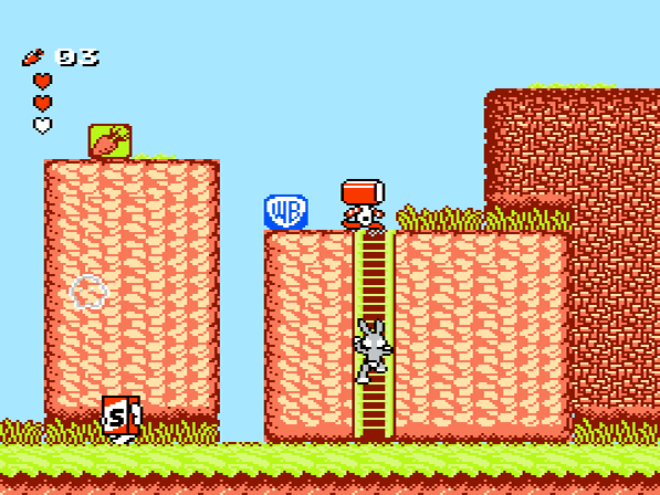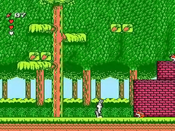 Bewaffnet mit einem schlagkräftigen Hammer lenkt ihr Bugs durch zahlreiche Levels, welche natürlich nur so gespickt sind mit gefährlichen Gegnern. Ob dies jetzt Blasen absondernde Waschmittelverpackungen oder schrillende Wecker sind - alle könnten einem Zeichentrickfilm entsprungen sein. Hat Bugs eine Welt erfolgreich absolviert, so wartet eine bekannte Looney Tunes Figur auf ihn, welche dem Hasen natürlich eine ordentliche Abreibe verpassen will. Das Abenteuer führt Bugs durch die unterschiedlichsten Gebiete. Ob staubtrockene Wüste, düstere Wälder oder die höchstgelegenen Berggipfel - Bugs Bunny wird vor nichts verschont. In den Abschnitten warten jedoch nicht nur Gegner und Hindernisse auf ihn, sondern es gibt auch diverse Items zu finden, welche ihn auf seiner Reise unterstützen. Ein Herz gibt ihm beispielsweise eine Energieeinheit zurück, während ein anderer Gegenstand ihm die Kraft zur Unverwundbarkeit verleiht. Zusätzlich finden sich über den ganzen Level verteil zahlreiche Karotten, welche nach Abschluss der Welt in einem Bonusspiel in Extraleben umgewandelt werden können. Diese sind auch bitter nötig, denn die hakelige und unpräzise Steuerung wird Bugs Bunny noch so manchen Versuch kosten. Auch die Kollisionsabfrage lässt einiges zu wünschen übrig, weiß man doch oftmals gar nicht, ob man einen Gegner mit dem Hammer nun getroffen hat oder nicht. Im Gegensatz zum mangelhaften Gameplay stimmt dafür der Umfang des Games. Die Welten sind zahlreich und verfügen über ein gelungenes Leveldesign. Der Schwierigkeitsgrad ist ausgewogen und unfaire Stellen bleiben größtenteils aus.