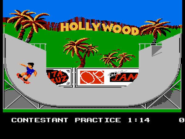 Nach dem Titelbild, welches euch mit der California Games Erkennungsmelodie auf das anstehende Geschehen einstimmt, habt ihr die Wahl, euch in allen oder lediglich in einer Auswahl der sechs enthaltenen Sportarten zu versuchen. Nach Eingabe eures Namens und der Wahl des gewünschten Sponsors geht es dann entweder zum Halfpipe Skateboarding in Hollywood, zum Foot Bag Wettbewerb in San Francisco, zum Surfen oder Rollerskating am weitläufigen Strand, in die Wüste zum BMX Rennen oder nach Yosemite zum Flying Disc Event. Hierbei kommt es je nach Disziplin auf das richtige Timing, Geschicklichkeit und Kombinationsgabe an. Nach Beendigung der Wettkämpfe werden eure Highscores leider nur bis zum Ausschalten der Konsole im Hauptmenü abgespeichert.