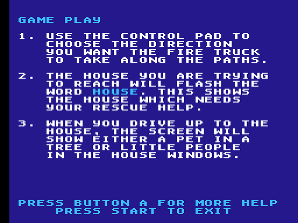 Die optische Gestaltung ist dabei äußerst schlicht ausgefallen. Die Figuren orientieren sich ganz an der Spielzeug-Vorlage und verfügen über keine richtigen Animationen, selbiges gilt für das Feuerwehr-Fahrzeug. Auch akustisch beschränkt man sich auf das Minimum. Neben der simplen Titelmusik und dem Feueralarm wird man nur vom Dröhnen des Motors begleitet und einem Soundeffekt, wenn die Figuren die Leiter hinunterklettern. Die Steuerung ist äußerst simpel: Mit dem Steuerkreuz wird das Fahrzeug navigiert und mit A lässt man die Hilfebedürftigen die Leiter hinunterklettern. Dennoch ist sie leicht schwammig ausgefallen. Der Umfang des Feuerwehr-Abenteuers ist ebenso relativ bescheiden: Großzügiges Levelrecycling und praktisch nicht vorhandene Abwechslung sorgen nicht unbedingt für hohen Wiederspielwert. Positiv zu erwähnen ist jedoch, dass die Bedienungsanleitung neben der obligatorischen Print-Version zusätzlich auch in das Spiel integriert wurde und direkt nach dem Titelbild konsultiert werden kann.