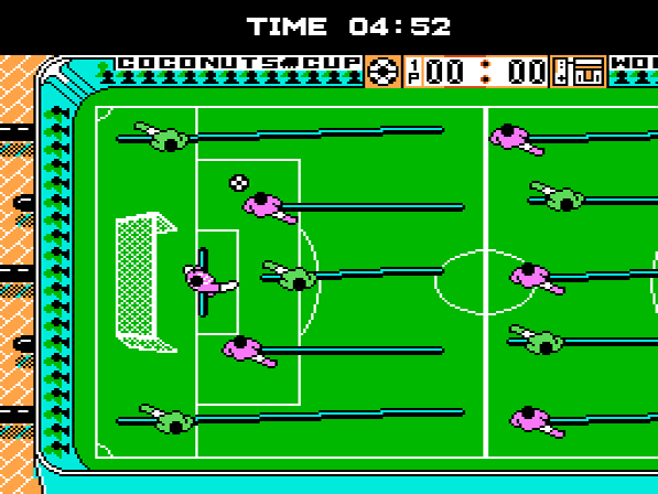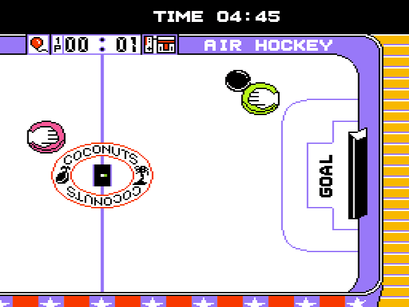 Die Tischversion von Ice Hockey ist der nächste Menüpunkt. Wie beim Original werden die Spieler mit Vor- und Rückwärtsbewegungen auf dem Feld umhergehetzt, gepasst und geschossen wird mit den A- und B-Buttons. Zu Beginn scheint dies äußert mühsam, nach einigen Runden hat man sich jedoch an die Steuerung gewöhnt. Was allerdings ungewollt für komische Momente sorgt, ist die teils äußerst seltsame Ballphysik. Auch bei diesem Spiel gilt: Wer die meisten Tore schießt, geht als Sieger aus dem Match hervor. Freunde des runden Leders wird zudem freuen, dass dieses Spiel auch in einer Fußballversion enthalten ist, die zu Beginn angewählt werden kann.