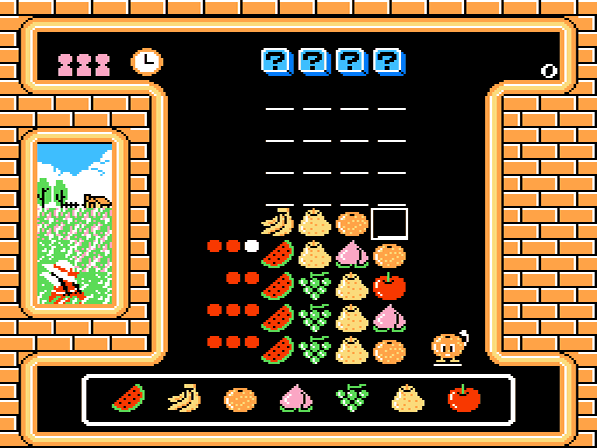 Zu guter letzt bietet Q-Master noch Stoff für alle Knobler. Das Spiel ist im Prinzip nichts anderes als eine fruchtige Version des bekannten Masterminds. Eine geheime Kombination muss in mehreren Schritten ertüftelt werden. Richtige Symbole werden jeweils durch einen kleinen Punkt am Rand vermerkt. Wer will, kann sich mit einem Zeitlimit zusätzlich unter Druck setzen.