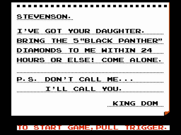 Kleine Info zum Schluss: Gumshoe war eines der ersten Spiele Nintendos, welches zwar in Europa und den USA erschienen ist, jedoch niemals in Nintendos Heimatland Japan. Offizielle Gründe sind nicht bekannt, aber zum einen waren in Japan Lightgun-Spiele nicht sonderlich populär, zum anderen benötigte Gumshoe eine Speicherkapazität von 160k. Dies war wesentlich mehr war als die 24k der anderen Zapper-Spiele wie Duck Hunt oder Wild Gunman und auch das 4-fache der 40k von Super Mario Bros.. Dadurch war auch die Modulproduktion entsprechend teuer und ein zusätzliches Risiko.