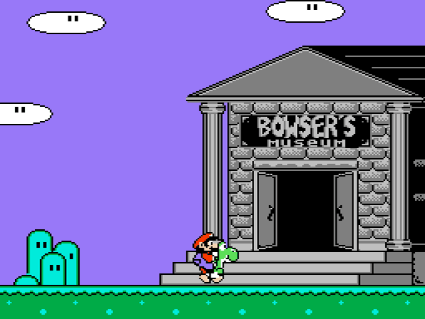In Bowsers Museum trefft ihr neben Statuen und Bilder von bekannten Videospielhelden auch auf große Türen. Hinter jeder dieser Türen werden 2 der gestohlenen Gegenstände von Koopa Troopas bestens bewacht. Drei der Schildkröten müssen in bester Mario Bros. Manier mit einem Sprung von unten besiegt werden, ehe das Item freigegeben wird. Schnappt es euch, und dann ab in die Zeitmaschine. Dort dürft ihr erst einmal raten, aus welcher Zeit das Item stammt. Habt ihr euch entschieden, werdet ihr kurzerhand dorthin transferiert.