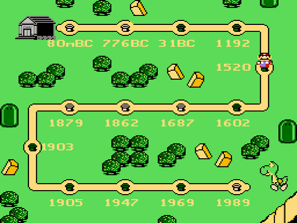 Auf diese weise zieht sich diese Ausprobiererei durch das ganze Spiel - Langeweile pur! Es ist eine wirkliche Schande, was Software Toolworks mit dem bekanntesten Videospielstar aller Zeiten macht. Wenn die Rätsel wenigstens etwas Sinn machen würden, wäre das Spiel okay, aber wie um Himmelswillen soll man wissen, in welche Zeit beispielsweise ein Apfel gehört (und es ist NICHT Adam und Eva)? Der könnte ja so gut wie in jeder Zeit vorkommen. Also beginnt die große Suche, das ständige Ausprobieren und immer wieder dieses Vögelchen...! Glücklicherweise gibt es aber doch einige Gegenstände, wo man wenigstes vermuten kann, in welche Zeit sie gehören. Beispielsweise kann eine Fackel ziemlich gut zum entfachen eines Olympischen Feuers benutzt werden! Also, nichts wie ab nach Griechenland... aber in welcher Zeit war das bloß? Und schon beginnt die Raterei wieder von vorne und der nächste Auftritt des Vögelchens ist schon vorprogrammiert. Als einzig Positives sind die kleinen Jump 'n' Run Einlagen zu erwähnen - das war's auch schon wieder.