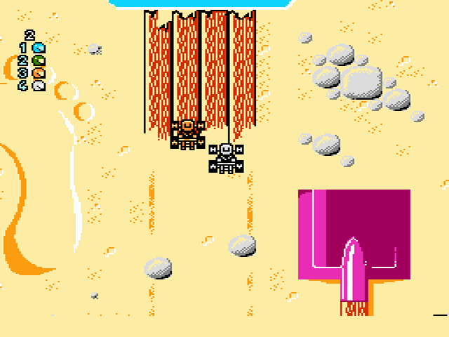 Die Steuerung der kleinen Vehikel wurde sehr einfach gehalten. Mit A gibt man Gas, mit B bremst man und schaltet bei einem stehenden Auto den Rückwärtsgang ein, die Richtung wird mit links und rechts angegeben. Damit lenken sich die Micro Machines sehr präzise und natürlich abhängig von den Eigenschaften eines jeden Fahrzeugs. Leider haben sich die Programmierer bei der Kollisionsabfrage gewisser Hindernisse nicht auch so viel Mühe gegeben, so kann es vorkommen, dass ihr euch schon mal in einem Gegenstand verhakt und wertvolle Zeit verbraucht, bis ihr endlich davon loskommt.