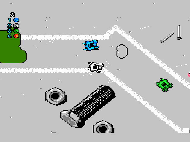 Nach der Selektion der Fahrzeuglenker geht es ab auf die Piste. Wer hier jedoch asphaltierte Rennbahnen erwartet, der liegt komplett daneben. Als Rennstrecken dienen häusliche Ortschaften wie ein voll besetzter Frühstückstisch, ein Billardtisch oder sogar eine gefüllte Badewanne. Die Strecke wird dabei von verschiedenen Gegenständen markiert. Auf der Werkbank kennzeichnet eine staubige Kreidenspur euren Weg, beim Morgenessen werden ihr dank Cornflakes auf den richtigen durchgelotst und im Garten sorgen Blumentöpfe dafür, dass ihr dem richtigen Weg folgt. Zwar könnt ihr die markierte Strecke jederzeit verlassen, wer aber versucht, dadurch einige Abkürzungen zu erschummeln, wird mit einer Zurückversetzung bestraft.