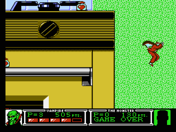 Die Story des Spiels darf man getrost vergessen: Die Protagonisten Vampir und Monster (Frankensteins Monster, um genau zu sein) sitzen gerade gemütlich vorm typischsten aller Röhrenfernseher der späten 80er, als ihnen auf dem Bildschirm plötzlich der finstere Hexenmeister erscheint. Ihr anscheinender Erzfeind fordert die beiden ohne ersichtlichen Grund zum Kampf auf, auf den sich die gelangweilten Couchpotatoes natürlich ohne mit der Wimper zu zucken einlassen. Sehr tiefgründig das Ganze also, und so sinnfrei, wie man es von einem Titel der Epoche dieses Machwerks nur erwarten darf... warum nur kommen Storywriter aktueller Videospiele nicht mehr auf derartige Geistesblitze? Das würde Spielern aktueller Konsolen vermutlich die eine oder andere minutenlange, nervtötende Cutscene ersparen…