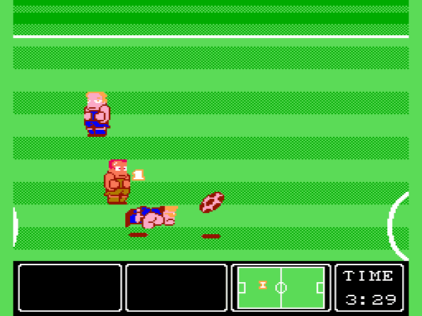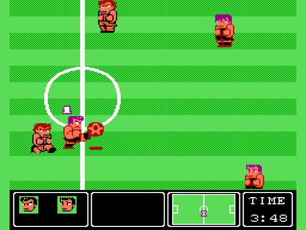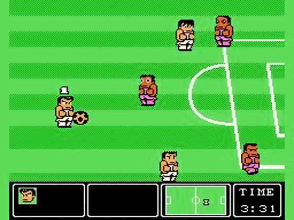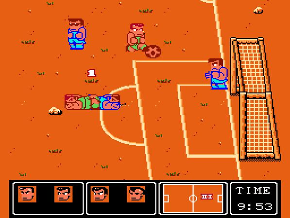 Nun zum Spielgeschehen an sich: Ziel ist es, wie sollte es auch anders sein, die Matches für sich zu entscheiden, indem man den Ball, egal wie, ins Netz des Gegners bringt. Kann man im Spiel gegen etwas langsamere Mannschaften, die es am Anfang des Turniers zu besiegen gilt, sogar mit dem Ball einfach ins gegnerische Tor rennen, braucht man gegen bessere Kontrahenten wie beispielsweise Argentinien oder West Deutschland (das Spiel erschien vor der Wiedervereinigung Deutschlands, nur falls sich manche jetzt wundern ;)) meist die sogenannten Superschüsse, um Treffer zu landen. Diese werden durch einen Fallrückzieher vollführt, den man durch gleichzeitiges Drücken von A und B einsetzt und sind von Mannschaft zu Mannschaft unterschiedlich: So bläht sich bei den Russen zum Beispiel der Ball noch kaugummiartig auf, bevor er losdonnert, bei den Japanern dagegen gleitet er in regelmäßigen Abständen eiförmig in Richtung Tor. Meist unhaltbar für den Keeper, stehen einem pro Halbzeit nur 5 dieser speziellen Techniken zur Verfügung. Durch gezielte Pässe und einem gelungenen Flugkopfball oder eben einem normalen Schuss lassen sich aber natürlich ebenso Tore erzielen, doch verlangt dieses schon etwas mehr Können vom Spieler ab als durch die getricksten Fallrückzieher. Sollte der Ball mal an den Gegner verloren gehen, so hat man die Möglichkeit, diese nach Herzenslust mit Grätschen und Bodychecks zu "vermöbeln", Strafen gibt es für solche Aktionen wie gesagt nicht. Hat einer der Spieler zu viele solcher vorsätzlichen Fouls erlitten, stehen diese bis zum nächsten Tor gar nicht mehr auf, so dass man meinen könnte, sie seien tot ;).