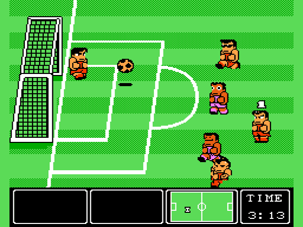 Nach Einschalten der Konsole werden euch auf dem Titelbildschirm die verschiedenen Spielmodi geboten: Zum einen die Weltmeisterschaft, in der man mit einem Team seiner Wahl gegen die 12 übrigen der Reihe nach antritt und zum zweiten der Multiplayermodus, in dem man sich mit Hilfe des NES Four Scores mit bis zu 4 Spielern lustige Freundschaftsspiele liefern kann. Wählt man ersteres, so darf man sich noch aussuchen, ob man den harten Weg bis zum Siegertreppchen alleine oder mit einem Freund als zweiten Spieler hinter sich bringen möchte. Wählt man nun noch eine der Mannschaften aus, die jeweils aus 8 witzig gestalteten Spielern bestehen, muss man nun noch seine Taktik zusammenstellen, die sich meist auf seine vom Computer gesteuerten Mitspieler beziehen. So hat man etwa die Wahl, ob diese eher dribbeln oder die Gegner mit langen Pässen ausspielen sollen. Sogar den eigenen Torwart kann man durch Umstellung der Taktik dazu bringen, seine Hütte während des Spiels des öfteren zu verlassen und auch auf dem ganzen Spielfeld mitzumischen.