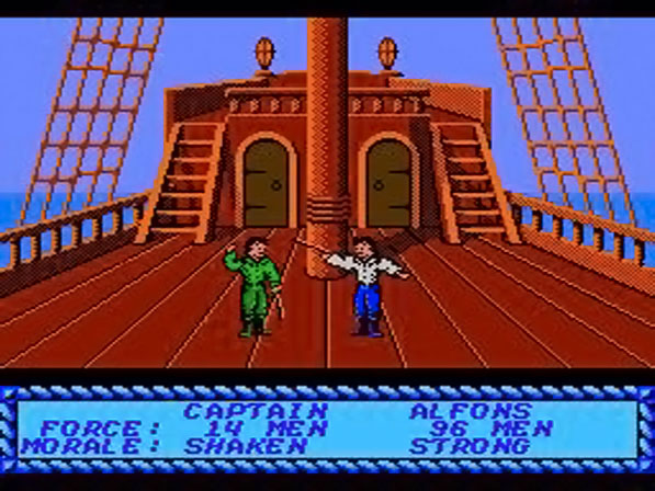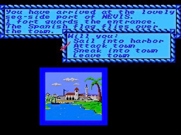 Mit einem kleinen Schiff und ein paar Mann Besatzung kann das große Abenteuer losgehen. Die Reise beginnt in einer Stadt eurer Nationalität. Im Verlaufe des Spiels werdet ihr noch auf zahlreiche andere, euch sogar feindlich gesinnte Ortschaften treffen. Es empfiehlt sich aber immer, dem örtlichen Gouverneur einen Besuch abzustatten. Neben wertvollen Infos, mit wem man Krieg führt oder eine Allianz hat, gibt es oftmals wichtige Aufträge oder gar Hinweise auf den verbleib eurer Familienmitglieder, welche entführt und zu Zwangsarbeit gezwungen wurden. Seid ihr dem Gouverneur gar sympathisch, so stellt er euch seiner Tochter vor. Je nach dem, wie sie euch gefällt, könnt ihr bei ihr anschmeicheln, oder gleich von Anfang an abblitzen lassen. Ebenfalls Pflicht ist ein Besuch in der örtlichen Kaserne, wo neben der Beschaffung aktueller Infos auch neue Seeleute angeheuert werden können. Ab und zu trefft ihr auch auf einen Fremden, welcher euch für ein paar Goldstücke eine Schatzkarte verkauft. Ein Besuch beim Händler kann ebenfalls nicht schaden. Neben Lebensmitteln können auch diverse Waffen wie Kanonen erstanden werden.