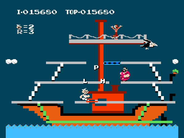 Mit Popeye stellen wir euch ein Spiel der aller ersten Spielegeneration des NES vor. Doch bevor es der Seemann auf die 8-Bit Konsole schaffte, war er im selben Spiel auf einem Automaten in den Spielhallen aktiv. Gestaltet wurde das Spiel von keinem geringeren als Shigeru Miyamoto höchstpersönlich. Damals noch ein junger, unerfahrener Spieledesigner, heute der weltweit beste seiner Branche. Die NES-Version unterscheidet sich nur gering von der Automaten-Version, so hat die Grafik zwar abgespeckt, die Level wurde aber alle übernommen.
