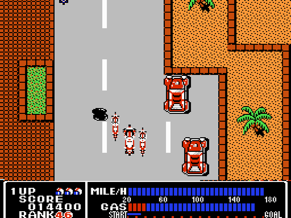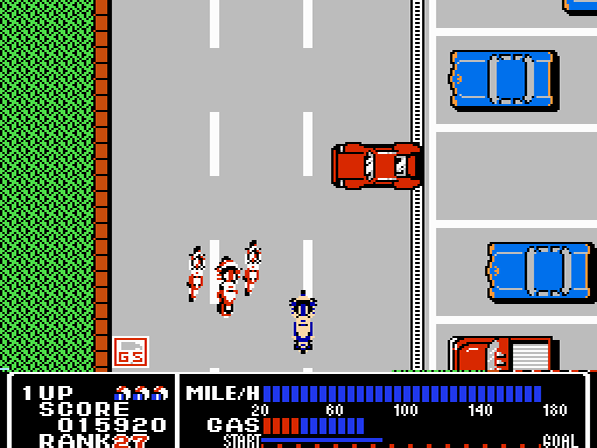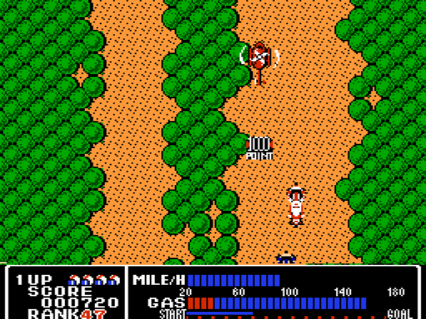 1988 brachte der japanische Videospielhersteller Taito mit Rally Bike einen neuen Racer in die Spielhallen, in welchem es aus der Vogelperspektive einen Motorradfahrer durch verschiedene Strecken zu lotsen galt. Zwei Jahre später erschien der Tital auch für Nintendos 8-Bit Konsole. Für die Konsolenumsetzung zeichnete sich das amerikanische Studio Romstar verantwortlich.