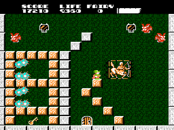 Das Abenteuer führt euch durch eine Vielzahl an Räumen, in welchen es stets das Ziel ist, den Schlüssel für den versperrten Ausgang zu finden und den Abschnitt jeweils durch die Tür zu verlassen. Um dies erfolgreich zu bewerkstelligen ist Dana auf die Hilfe seines Zauberstabs angewiesen. Dieser kann Blöcke erscheinen lassen, durch welche Abgründe überwunden oder höhergelegene Plattformen erreicht werden können. Auch Gegner können so vom Leib gehalten werden. Ebenso lassen sich Blöcke durch einen Wink mit den Zauberstab wieder verschwinden, über euch schwebende Klötze könnt ihr gar mit zwei Sprüngen von unten zerbröseln. Gelegentlich gelangen dadurch auch versteckte Items zum Vorschein.