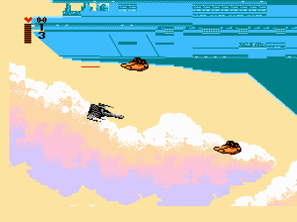 Das Spiel gliedert sich einerseits in reine Jump 'n' Run-Abschnitte, welche mitunter einige Action-Adventure-Elemente enthalten - sprich das Suchen neuer Jedi-Fähigkeiten sowie des Lichtschwerts -, und auf der anderen Seite in die Flugsequenzen: Protzte die 8-Bit-Variante von "Episode IV" noch mit dreidimensionalen Weltraumverfolgungsjagden an Bord des Millenium Falcons, muss der geneigte Zocker in der Fortsetzung wieder mit klassischer 2D-Optik vorlieb nehmen: An Bord des Snowspeeders respektive X-Wings werden attackierende AT-AT-Walker mit dem berüchtigten Schleppseilmanöver flachgelegt bzw. Cloud Cars und TIE-Fighter mittels Blaster in die Untiefen des Gasplaneten Bespin befördert. Ein interessantes und auflockerndes Feature stellt innerhalb der Jumper-Abschnitte die Möglichkeit dar, Luke ein Fahrzeug bzw. ein Tauntaun steuern bzw. reiten zu lassen; in dem Rebellenstützpunkt auf Hoth wird der Spieler beispielsweise mittels eines feindlichen Scout Walkers unwegsames Gelände passieren müssen. Ebenso positiv anzumerken sind die – sich stilistisch am Vorgänger orientierenden – mit einigen Animationen garnierten Standbilder zwischen den Levelabschnitten, welche mithilfe eines knappen Begleittextes die "Episode V"-Story weitererzählen. Technisch bietet die Cartridge hinsichtlich der grafischen Präsentation überdurchschnittliche Qualitäten; kritisch hingegen fällt die Größe des spielbaren Charakters aus: Bekämpfte der Spieler das Imperium im NES-Vorgänger noch mit in einem zurückhaltenden Cartoon-Stil gestalteten Luke Skywalker bzw. einer der beiden anderen steuerbaren Protagonisten, hüpft man nun mittels eines äußerst minimalistisch gehaltenen Pixel-Luke durch unwegsames Gelände, welches mitunter während des Finales auf Bespin für Frustmomente sorgen wird. Akustisch gibt es bewährte John Williams-Kost auf die Ohren... Zumindest sollte es dies in einem Spiel, welches den Krieg der Sterne thematisiert; stattdessen wartet "Star Wars – The Empire Strikes Back" mit einigen auf markante Jingles reduzierten Soundfragmenten aus dem Schaffen des Komponisten auf, doch auch dies nur unregelmäßig sowie in Verbindung mit Störgeräuschen, sofern diese mal wieder von einem anderen Soundeffekt überlagert werden.