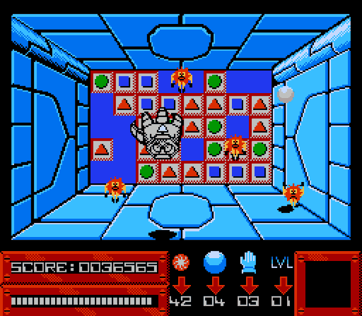 Doch ganz so einfach wird es euch nicht gemacht. Zahlreiche Gegner leisten euch im Labyrinth Widerstand. Die meisten könnt ihr durch einen oder mehrere Treffer mit der Kugel beseitigen, andere wiederum zeigen sich unbeeindruckt oder fressen sogar den Energieball einfach auf. Habt ihr alle Kugeln verbraucht, oder ist eure Energieleiste leer, verliert ihr ein Leben.