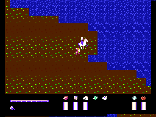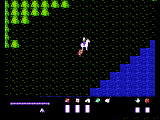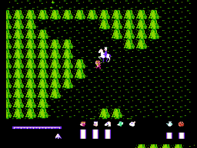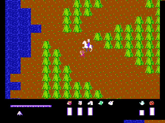 Nach dem Warp befindet ihr euch auf einer größeren Landmasse und die langatmige Suche nach dem nächsten Ziel geht weiter. Hinzu kommen nun auch gelegentliche Kämpfe, bei denen der Bildschirm wie in Zelda II in eine Seitenansicht wechselt. Allerdings laufen euch die Gegner auf der Oberwelt - anders als im besagten Zelda-Abenteuer - nicht sichtbar über den Weg. Mit der Zeit wird euch auch klar, dass es sich dabei ebenso wenig um echte Zufallskämpfe wie z.B. im RPG Final Fantasy handelt. Stattdessen verhält es sich wie mit dem versteckten Warp: Die Felder, auf denen euch Kämpfe erwarten, sind von vorne herein vom Spiel festgelegt, aber unsichtbar. Billiger geht's nicht.