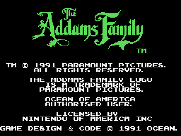 Bereits 1965 begeisterte die Addams Family zahlreiche Fernsehzuschauer mit ihrer gruseligen Comedy-Serie. Den Gang auf die Kinoleinwand tätigte die Sippe knapp 30 Jahre später, nämlich 1991. Die fast schon obligatorische Videospielumsetzung nahm Ocean in die Hand und programmierte unter anderem auch eine NES-Version. Das Geschehen orientiert sich dabei an der Filmvorlage. Der Familienanwalt der Addams ist hinter deren Vermögen her. Er nutzt die Abwesenheit von Familienoberhaupt Gomez, nimmt die Familie gefangen und sperrt sie getrennt voneinander im Haus ein. Morticia, Gomez geliebte Ehefrau, nimmt er gar als Geisel und verlangt eine Million Dollar Lösegeld. Gomez bleibt nichts anderes übrig, als die Summe aufzutreiben und den Verräter aufzuspüren.
