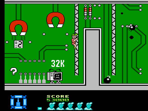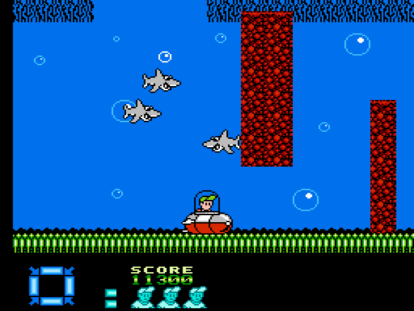 Skooters Abenteuer führt ihn zu Beginn in ein tropisches Inselparadies. Schon nach den ersten Schritten und einer Begegnung mit einem riesigen Magneten, einem unter Wasser festsitzenden U-Boot und einem schwebenden Fragezeichen dürfte der Spieler feststellen, dass man es hier nicht mit einem gewöhnlichen Standard-Jump n’Run zu tun hat. Tatsächlich offenbart sich Treasure Master als Mix aus Plattformer sowie Adventure. So gilt es bereits im Einstiegslevel, verschiedene Gegenstände zu finden und durch deren Einsatz ein Weiterkommen überhaupt erst zu ermöglichen. Nutzt eine Bombe, um an eine Fernsteuerung zu gelangen. Mit dieser erlangt ihr die Kontrolle über den angesprochenen Magneten, mit welchem ihr wiederum das eingekeilte U-Boot befreit. An Bord des Gefährts dürft ihr durch zuvor unpassierbares, von Haien verseuchtes Gewässer weitere Bereiche der Insel-Welt erkunden. Soweit ein kleiner Einblick in den Ablauf des Spiels, und dies war erst der Einstieg.