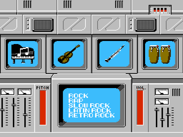 Bei Rock on Air dürft ihr musikalisch tätig werden. Hier wird der U-Force-Controller wieder flach vor euch hingelegt. Ihr dürft euch aus den 4 verfügbaren Musikinstrumenten Klavier, Geige, Klarinette und Bongos mit Hilfe der zentralen Sensoren eines aussuchen. Mit dem Sensor links-außen definiert ihr die Tonhöhe, mit rechts spielt ihr das Instrument und kontrolliert durch Auf- und Abbewegungen die Lautstärke. Via Select-Taste dürft ihr euch dazu auch noch einen von 5 verschiedenen Hintergrundbeats auswählen. Das ganze offenbart sich als sinnlos und langweilig, vernünftige Musikstücke lassen sich so kaum komponieren und ein Speichern oder erneutes Anhören derer ist ebenfalls nicht möglich.