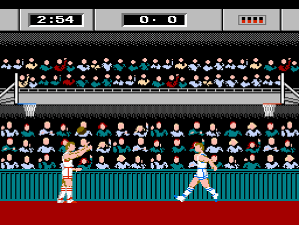 Last but not Least ist auch noch Power Field B-Ball enthalten, welches mit Practice und One-on-One zwei Spielmodi bietet. Auch hier wird das U-Force-Gerät wieder flach vor euch hingelegt. Im Practice-modus wird nur die linke Seite des Controllers genutzt. Ihr schlüpft in die Haut eines Basketballspielers. Mit dem Sensor unten rechts könnt ihr durch Dribbelbewegungen mit dem Ball auf den Korb zulaufen, mit dem Sensor ganz links setzt ihr zum Sprung an und mit einem Wisch über die oberen Sensoren werft ihr den Ball Richtung Korb. Je nach Geschwindigkeit eurer Bewegung, wirkt sich dies auch auf Stärke und Weite des Wurfs aus. Im One-on One-Modus dürft ihr gegen einen menschlichen Gegenspieler antreten. Beide Spieler nutzen je eine Hälfte des U-Force-Controllers und treten in einem auf 3 Minuten befristeten Spiel gegeneinander an. Ein Duell gegen einen Computer-Gegner ist leider nicht möglich. Dennoch macht Power Field B-Ball nach etwas Eingewöhnungszeit durchaus Spaß, vor allem natürlich gegen einen menschlichen Mitspieler.