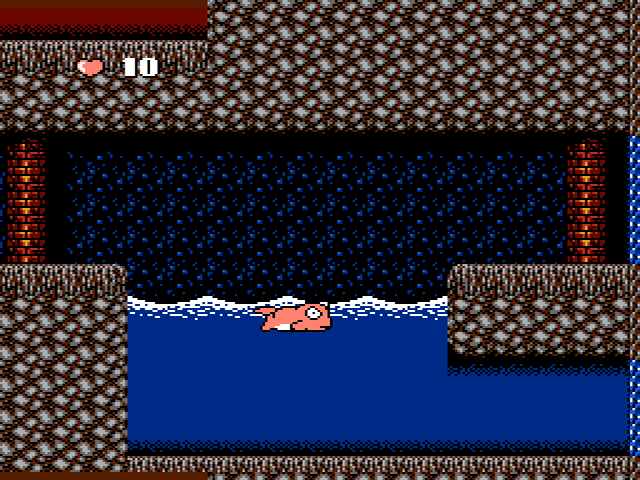Doch wo Licht ist, ist meist auch Schatten – kommen wir also zu den negativen Seiten von Ufouria. So sind beispielsweise einige höher gelegene Plattformen nur sehr schwer zu erreichen, was schnell in Frust ausarten kann, wenn man durch einen nicht hundertprozentig richtig abgepassten Sprung den Großteil seiner Energie verliert und sich im schlimmsten Falle erst einmal wieder vom Start des Spiels aus zur jeweiligen Stelle zurückarbeiten muss. Des Weiteren hat Ufouria durchaus einige unnötige Längen, die sich die Entwickler ruhig hätten sparen können. Beispiel gefällig? Gil der Frosch lernt im Verlauf des Spiels, kleine Bomben zu legen. Diese können jedoch nur jeweils einen oder maximal zwei Felsblöcke auf einmal zerstören, um so neue Areale zu erschließen. So weit, so gut. An einer Stelle des Spiels bekommt man allerdings das Gefühl, man müsse sich durch die gesamten Alpen sprengen, so viele Felsblöcke behindern das Weiterkommen. Dass inmitten einer dieser Felswände auch noch ein Lichtschalter versteckt ist, den es zu betätigen gilt, macht diese eintönige Aufgabe nicht unbedingt angenehmer – und auch nicht, dass sich Gil vorm Legen jeder einzelnen Bombe erneut für einige Sekunden aufladen muss. Solche Passagen bilden glücklicherweise jedoch eher die Ausnahme als die Regel. Um den Vergleich mit Metroid noch einmal anzustellen: Die Spielewelt an sich ist in Ufouria zwar durchaus detaillierter und abwechslungsreicher gestaltet als Planet Zebes, sie fällt aber auch insgesamt etwas kleiner aus. Die Orientierung kann man gelegentlich allerdings trotzdem verlieren, insbesondere wenn man von den ab und an verfügbaren Verbindungstoren Gebrauch macht, die quasi als Warpzonen zu weiter entfernten Gebieten dienen. Diese Verbindungstore ersparen einem zwar einiges an Backtracking, das im Genre der Action-Adventures durchaus schon einmal ausarten kann und bei Weitem nicht jedermanns Sache ist. Allerdings ist es bei der Vielzahl an derartigen Warpzonen in Ufouria schon fast ein Kunststück, sich alle möglichen Shortcuts zu merken. So befindet man sich oftmals auf der Suche nach dem richtigen Verbindungstor zum Zielort X und tappt währenddessen in zwei oder drei falsche, was einem die erhoffte Zeitersparnis durch geringeren Weg sofort zu Nichte macht. Papier und Bleistift können hier allerdings sicherlich Abhilfe schaffen. Neben gelegentlichen Slowdowns in der Framerate bei Bosskämpfen, die auf die extrem detaillierten und extragroßen Sprites zurückzuführen sind, muss allerdings noch ein weiterer echter Makel zumindest kurz angesprochen werden: Und zwar eine Eigenheit der Steuerung. Die vier Helden lassen sich zwar äußerst präzise navigieren, warum zum Zerstampfen von Gegnern allerdings bei Landung auf ebendiesen auf dem D-Pad nach unten gedrückt gehalten werden muss, bleibt vermutlich Geheimnis der Entwickler. Hierfür gibt es wirklich keinen plausiblen Grund und es fühlt sich einfach ungewohnt, überflüssig und fehl am Platz an.