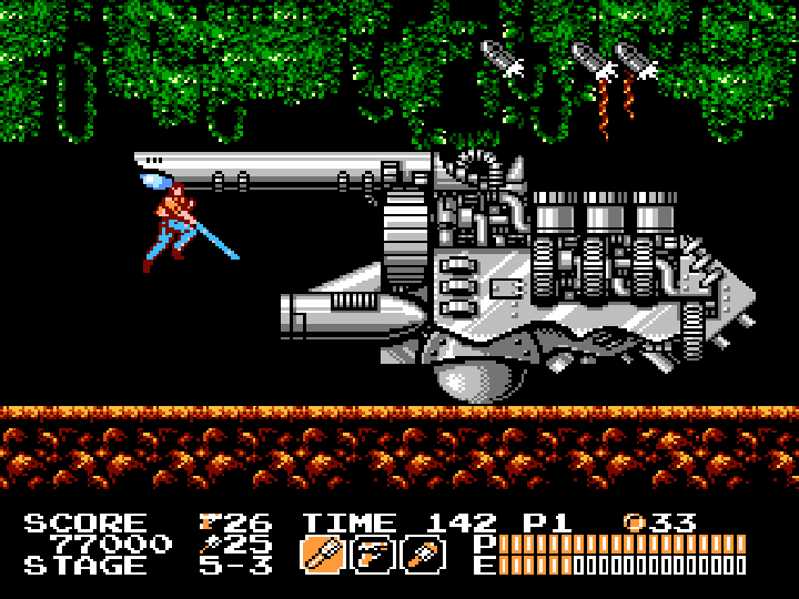 Die Plattform-Abschnitte sind klar der Mittelpunkt des Spiels. Hier zeigt sich die größte Detailverliebtheit: Gegnerarten wechseln regelmäßig, Hindernisse sind fair, aber herausfordernd platziert, und der Spielfluss wird nur selten durch unfair designte Stellen gestört. Besonders erfreulich: Es gibt keine Zeitlimits, sodass man sich die Areale auch in Ruhe erschließen kann – was bei vielen NES-Titeln keine Selbstverständlichkeit ist. Auch die Bosskämpfe sind gelungen: klassisch, fordernd und meist auf Mustererkennung ausgelegt, ohne dabei frustrierend zu werden.