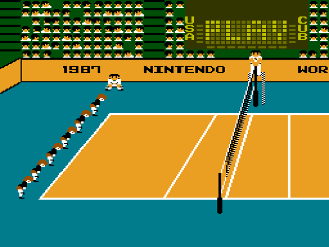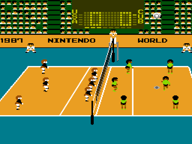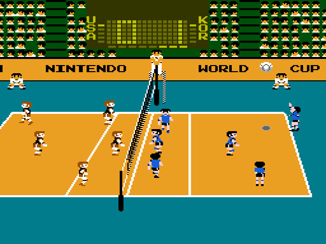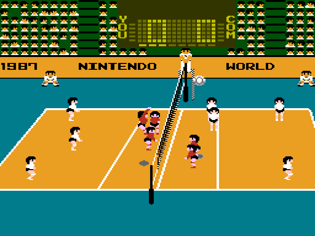 So schnörkellos der Name des Spiels, so schlicht dessen Gameplay. Jenes ist bestenfalls als lausig zu bezeichnen, was gleich zahlreiche Gründe hat. Kenner der Teamsportart werden mit den Regeln vertraut sein - mit bis zu maximal drei Ballberührungen ist das runde Spielgerät ohne Bodenkontakt über das Netz in die gegnerische Spielhälfte zu befördern. Dies erweist sich in Nintendos Frühwerk jedoch als schwieriger, als es einem lieb ist. Dies liegt zum einen daran, dass das Timing und die Positionierung eurer Spielfiguren scheinbar perfekt sein müssen, um einen Ball überhaupt annehmen oder weiterleiten zu können. Unnötig erschwert wird dies dadurch, dass man stets bis zu drei von insgesamt sechs Teamgenossen gleichzeitig steuert, sobald ein Ball in Richtung der eigenen Spielfeldhälfte fliegt. Höchst verwirrend ist im Eifer des Gefechts also, herauszufinden, was gerade eigentlich vor sich geht und welche Spieler in der aktuellen Situation überhaupt in Frage kommen, den nächsten Ball zu parieren. Sollte man dieses Rätsel rechtzeitig gelöst haben, gilt es aber immer noch, den drohenden Aufprallpunkt des Balls rechtzeitig zu erreichen und den Ball anzunehmen. Aufgrund des Spieltempos und der erforderlichen Koordination gleich mehrerer Spielfiguren erfordert dies allerdings weitaus mehr Präzision, als es dem Spielspaß gut tun würde. So gehen Kombinationen von Ballannahme, Weiterleiten und Schmetterball selbst nach längerer Spielzeit noch regelmäßig in die Hose und auch das Abblocken gegnerischer Angriffe am Netz gelingt äußerst selten, da das Stellungsspiel anscheinend millimetergenau durchgeführt werden muss und immer nur eine Figur gleichzeitig zum Block ansetzen darf. Es scheint schon fast unnötig zu erwähnen, dass dieses Privileg allzu oft ausgerechnet demjenigen Offensivspieler zuteilwird, der am weitesten vom aktuellen Geschehen entfernt ist. Und auch wenn man einen Ball mal ins Aus schlägt, ist nicht wirklich ersichtlich, warum dies passiert ist oder was man falsch gemacht hat. Da hilft es auch nichts, dass auch der Computer hin und wieder seine liebe Mühe mit der Steuerung zu haben scheint. Denn in der Regel wird er trotzdem weniger Fehler machen als man selbst - es sei denn, man widmet dem Spiel mehr Zeit, als es einem aufgrund des geringen Spaßfaktors wert sein sollte. Das Problem ist einfach, dass sich zu keinerlei Zeitpunkt ein organischer Spielfluss einzustellen vermag. Stattdessen ist man stets bemüht, den nächsten Fehler zu vermeiden. Und dieser ist nicht zuletzt aufgrund der willkürlich erscheinenden Auslegung des Spiels hinsichtlich der Kollisionsabfrage so sicher wie das Amen in der Kirche. Es scheint manchmal fast so, als lege das Spiel für jeden Ballwechsel erneut Regeln fest, wie nah man einem angezeigten Aufprallpunkt für eine erfolgreiche Annahme tatsächlich sein muss.