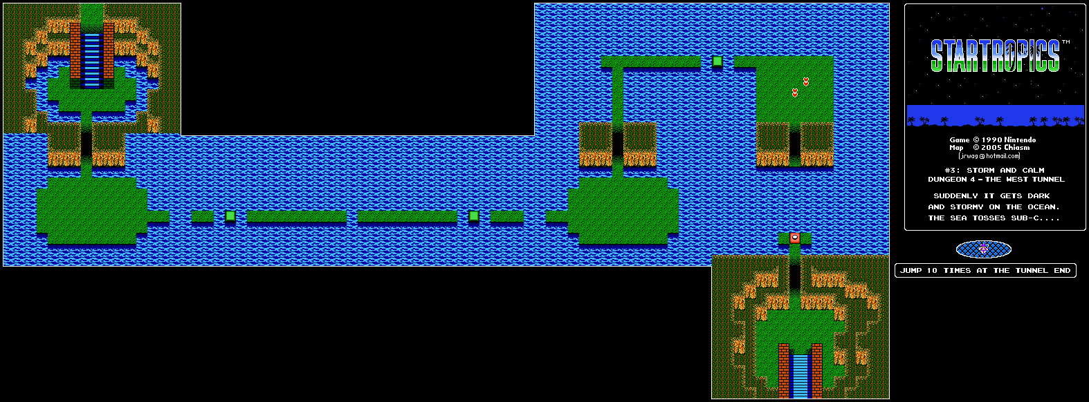 Ein heftiger Sturm kommt auf und erwischt auch Sub-C. Mike findet sich daraufhin an einem Strand wieder, während das U-Boot zerstört im Wasser treibt. Geht nun nach unten nehmt die Treppe und besucht die dortige Hütte. Ihr erhaltet Kokosnussmilch, welche eure komplette Energie wiederherstellt. Verlasst die Hütte und begebt euch zur Höhle weiter rechts.